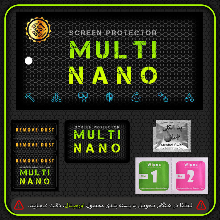 امروزه خودروها دارای دستگاه پخش هوشمند، با صفحه نمایش لمسی و ابعادی متنوع هستند و محافظت از این نوع مانیتور ها در برابر ضربات احتمالی و ایجاد خط و خش، یکی از مهمترین دغدغه های صاحبان خودرو به شمار می آید. شرکت مولتی نانو به صورت کاملا دقیق و با به روز ترین متد های اندازه گیری، محافظ هایی با ابعاد کاملا انحصاری برای نمایشگر های هوشمند خودروها طراحی ، تولید وعرضه کرده است. محافظ صفحه نمایش انعطاف پذیر نانو Multi Nano مناسب برای مالتی مدیا مانیتور فابریک خودرو MVM X22 New بوده و بر روی این مانیتور قابل نصب است. محافظ نمایشگر خودرو مولتی نانو، نسل جدید محافظ های صفحه نمایش، با ساختاری شفاف که از تکنولوژی نانو در ساخت آن استفاده شده و از ضخامت 0.2 میلی متری برخوردار میباشد(شیشه ای نمی باشد) و باعث مقاومت بسیار بیشتر در برابر ضربه نسبت به گلس های معمولی شده است، همچنین کاملا نشکن است و در صورت برخورد ضربه نخواهد شکست، و به مرور زمان کدر نخواهد شد و لمس آن با توجه به ساختار تکنولوژی روغنی بسیار آسان و روان است. توجه داشته باشید که این محصول دارای برچسب اول (قبل از نصب) و برچسب دوم (بعد از نصب) می باشد و داخل بسته بندی محصول برای سهولت در نصب، لوازم کامل به همراه آموزش نصب نیز وجود دارد.xxxشما میتوانید ویدئو آموزش نصب و تست مقاومت محافظ بر روی مانیتور را در آپارات و شبکه های مجازی مشاهده کنید.xxx