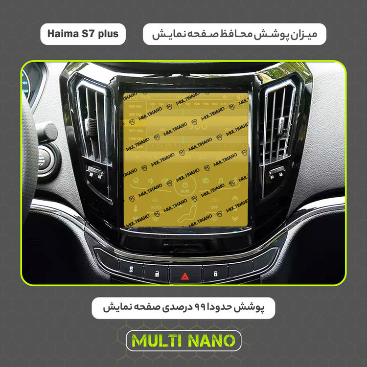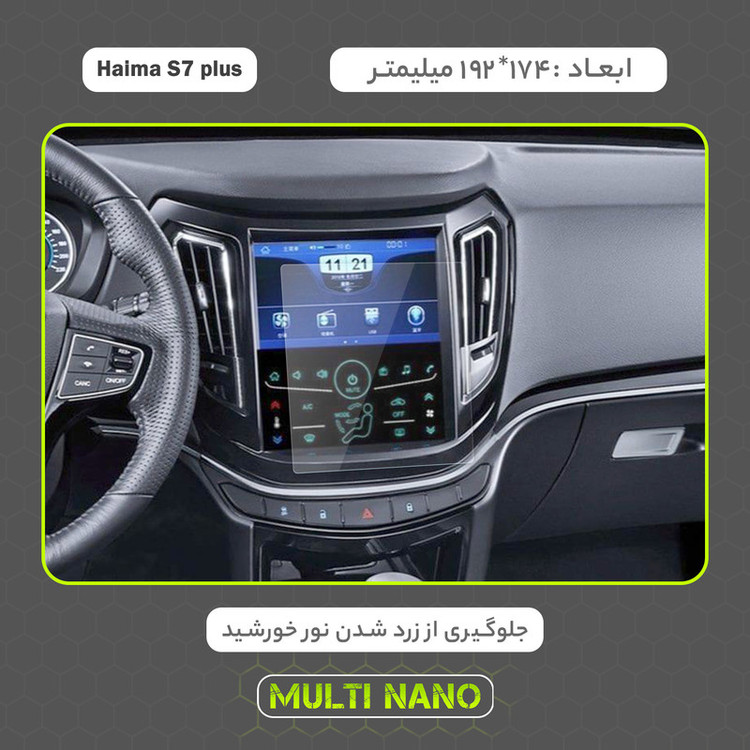 امروزه خودروها دارای دستگاه پخش هوشمند، با صفحه نمایش لمسی و ابعادی متنوع هستند و محافظت از این نوع مانیتور ها در برابر ضربات احتمالی و ایجاد خط و خش، یکی از مهمترین دغدغه های صاحبان خودرو به شمار می آید. شرکت مولتی نانو به صورت کاملا دقیق و با به روز ترین متد های اندازه گیری، محافظ هایی با ابعاد کاملا انحصاری برای نمایشگر های هوشمند خودروها طراحی ، تولید وعرضه کرده است. محافظ صفحه نمایش انعطاف پذیر نانو Multi Nano مناسب برای مانیتور خودرو (هایما S7 Plus) بوده و روی تمامی مانیتورهای این خودرو از جمله مانیتورهای رایان فن کاو اندیش، کروز و سیمیا الکترونیک قابل نصب است. محافظ نمایشگر مولتی نانو، نسل جدید محافظ های صفحه نمایش، با ساختاری شفاف که از تکنولوژی نانو در ساخت آن استفاده شده و از ضخامت 0.2 میلی متری برخوردار میباشد(شیشه ای نمی باشد) و باعث مقاومت بسیار بیشتر در برابر ضربه نسبت به گلس های معمولی شده است، همچنین کاملا نشکن است و در صورت برخورد ضربه نخواهد شکست، و به مرور زمان کدر نخواهد شد و لمس آن با توجه به ساختار تکنولوژی روغنی بسیار آسان و روان است. توجه داشته باشید که این محصول دارای برچسب اول (قبل از نصب) و برچسب دوم (بعد از نصب) می باشد و داخل بسته بندی محصول برای سهولت در نصب، لوازم کامل به همراه آموزش نصب نیز وجود دارد.