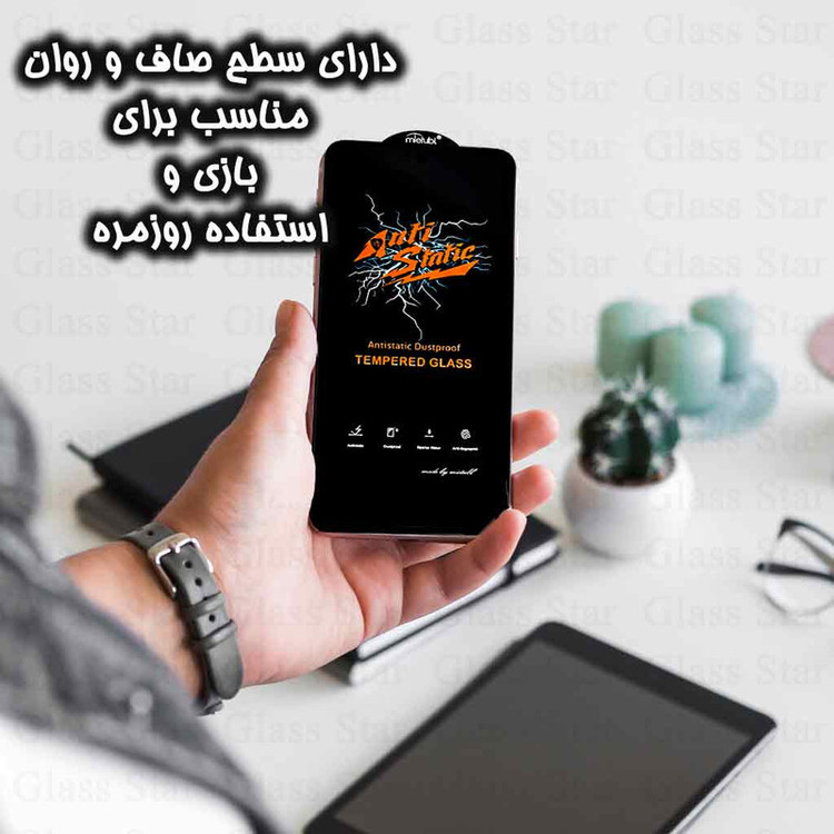 امروزه گلس های متنوع با کیفیت عالی در اختیار کاربران قرار گرفته است. آنتی استاتیک یکی از مرغوب ترین و باکیفیت ترین نوع گلس به شمار می آید. لبه های این گلس دارای منحنی است و به اشیاء تیز و برنده گیر نمی کند و آسیبی به صفحه نمایش نمی رساند.از نکات کلیدی این نوع گلس، ویژگی آنتی استاتیک است که سبب می شود گرد و غبار جذب صفحه نمایش گوشی نشود. گلس محبوب آنتی استاتیک در برابر ضربات ناگهانی بسیار مقاوم و از سختی 9H برخوردار است. گلس آنتی استاتیک آب گریز و چربی گریز است و لکه های چرب و آب بر روی صفحه به راحتی از بین می رود.یکی از نکات بسیار مهم در رابطه با این گلس، جلوگیری از آسیب به چشم به هنگام استفاده از موبایل است.