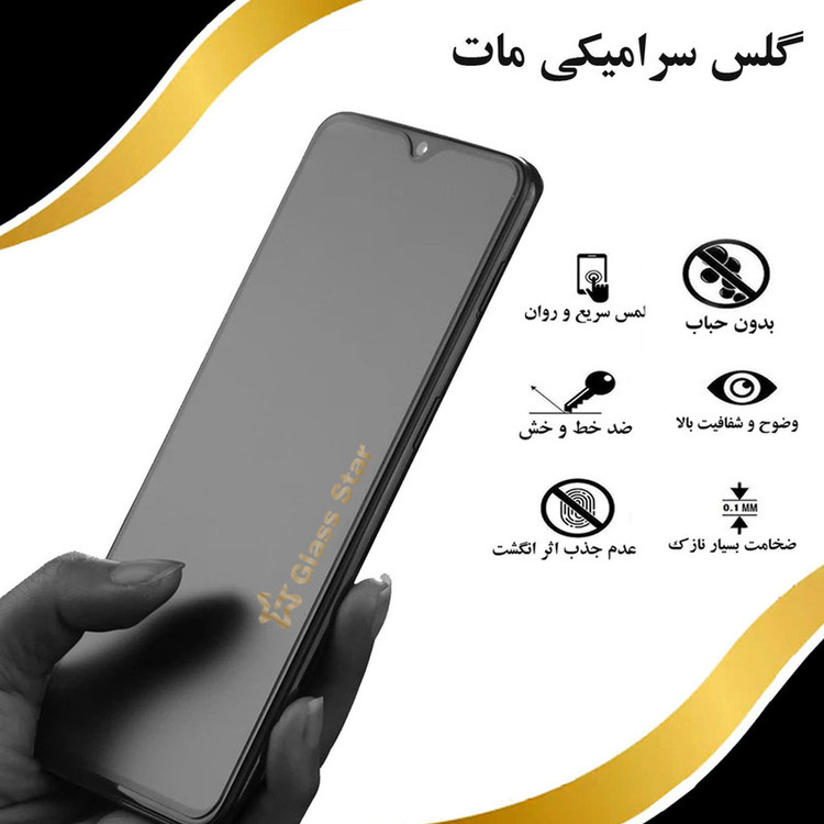 یکی از مشکلات امروزه مردم در استفاده از گوشی های موبایل، کاهش دید صفحه نمایش در مقابل تابش شدید نور خورشید می باشد. برای این منظور گلس های سرامیکی مات گلس استار (Ceramic Matte)، گزینه بسیار مناسبی برای محافظت از صفحه نمایش گوشی موبایل شیائومی Redmi Note 12 Pro 4G می باشد. این نوع محافظ صفحه نمایش، ضد تابش و ضد بازتاب هستند به طوری که وقتی صفحه نمایش شما روشن است، هیچ گونه تصویری و بازتابی را درون آن مشاهده نخواهید کرد و در نتیجه یک تصویر با کیفیت و بدون بازتاب را خواهید داشت. با کم کردن نورهای مزاحم یک حالت مات به گوشی شما می دهد و در این صورت نورهای مزاحم چشم شما را اذیت نمی کنند و در عین حال باعث کاهش وضوح تصویر نمی شوند. کم شدن نورهای مزاحم و فیلترهای ضد اشعه باعث شده که کمتر دچار خستگی چشم شوید وهمین امر کمتر به چشم شما آسیب می زند و دیگر نگران مشکلاتی نظیر پیری زودرس چشم هم نخواهید بود. محافظ صفحه سرامیکی مات سطح کاملا صافی دارد و برای بازی بسیار مناسب بوده و وقتی که آن را لمس می کنید روان و سریع بودن آن را به خوبی احساس میکنید.علاوه بر ویژگی های فوق، مانع از ایجاد خط و خش شده و در مقابل ضربات ناگهانی هم بسیار مقاوم می باشد. گلس های Ceramic Matt هنگام وارد شدن ضربه شدید خرد نمی شوند و پیوسته باقی می مانند و از آسیب رسیدن به گوشی و یا تعویض گلس توسط کاربر نیز جلوگیری می کنند. بنابراین شما می توانید با خیال راحت این مدل گلس را برای محافظت از صفحه نمایش گوشی خود خریداری نمایید.