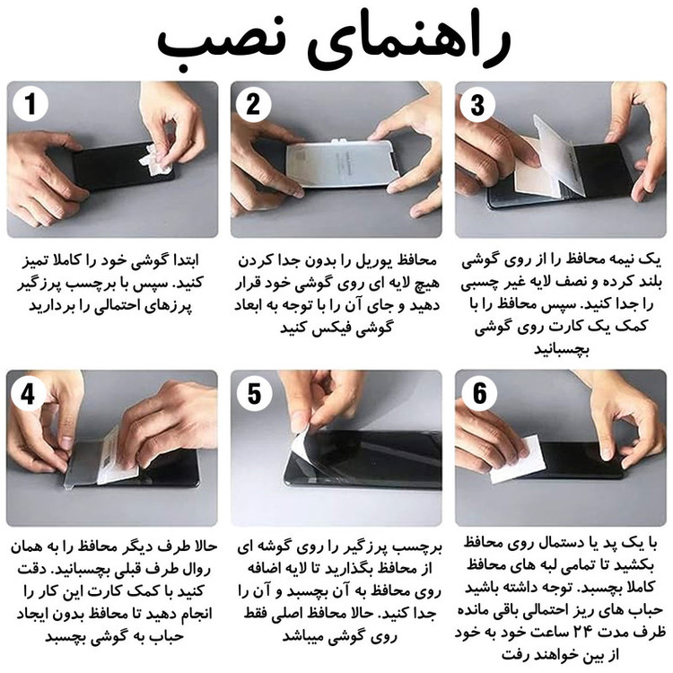 افرادی که نمی خواهند روی بدنه گوشی آنها هیچ گونه خط و خشی ایجاد شود می توانند از برچسب های پشت گوشی هیدروژل استفاده نمایند. این نوع محافظ ضخامت بسیار کم و انعطاف پذیری بالایی دارد که بدنه پشت گوشی شما، حتی لبه های منحنی پشت گوشی را به طور کامل پوشش می دهد و از چسبندگی بالایی برخوردار است. با میزان شفافیت بالایی که دارد در ظاهر و رنگ گوشی شما تغییری ایجاد نمی کند. بنابراین اگر شفافیت، ظرافت و جلوگیری از ایجاد خط و خش بدنه گوشی برایتان اهمیت دارد؛ برچسب های هیدروژل پشت گوشی، گزینه بسیار مناسبی برای خرید هستند. لطفا در هنگام نصب، به آموزش نصب توجه فرمایید.