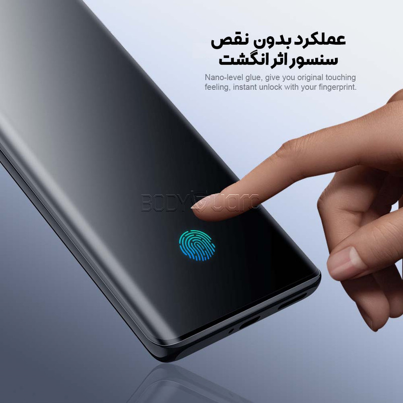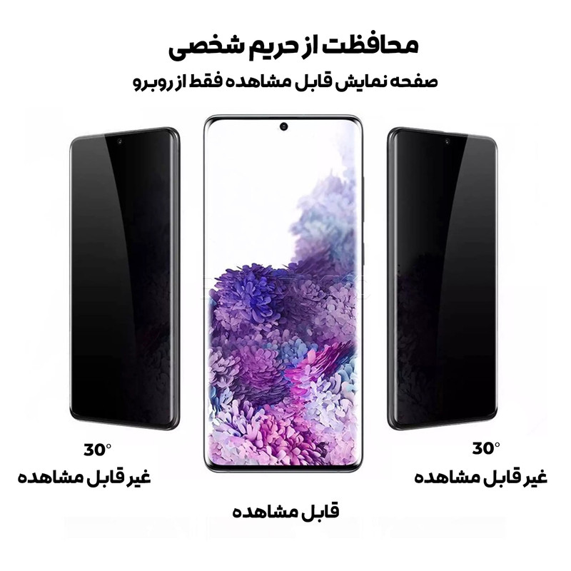 صفحه نمایش تنها قابل مشاهده برای فرد روبرو محافظ تمام صفحه عملکرد بی نقص سنسور اثر انگشت به همراه ویدیو آموزش نصب در بسته بندی مقاوم در برابر ضربه مقاوم در برابر هر گونه خط و خش و اجسام نوک تیز مناسب برای استفاده با تمام قاب ها حساسیت لمس بالا