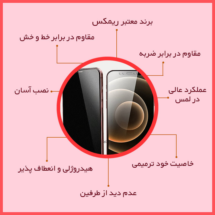 ویژگیها: جلوگیری از انعکاس نور , قابلیت نصب آسان , مقاوم در برابر چربی و اثرانگشت , مقاوم در برابر خط و خش