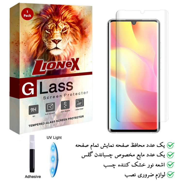 محافظ صفحه نمایش یووی لایت لایونکس مدل LSP مناسب برای گوشی موبایل شیائومی Mi Note 10 Lite