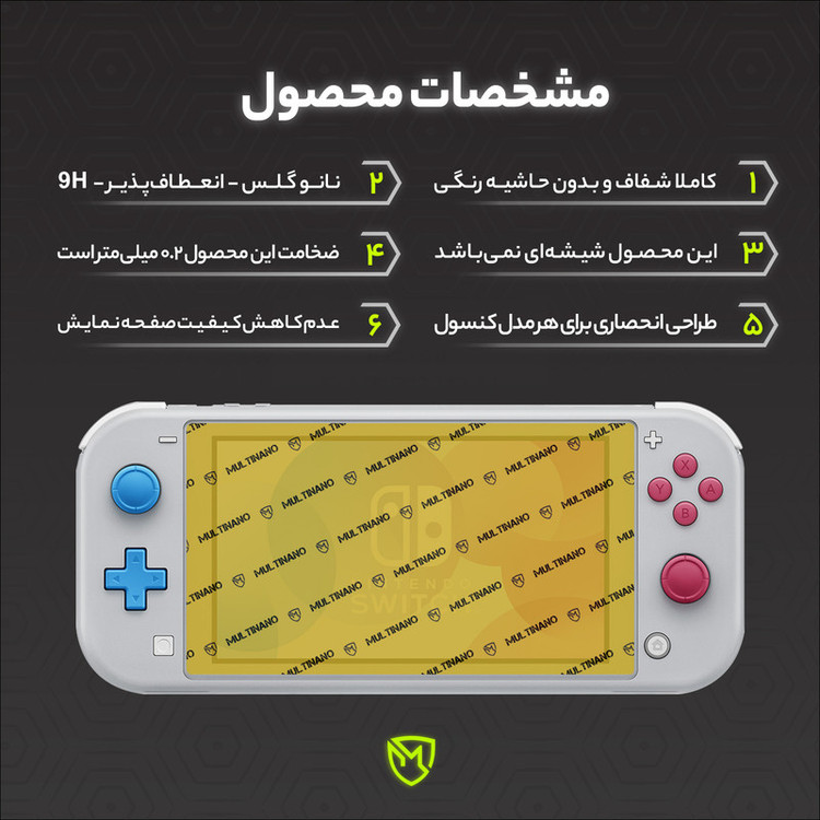محافظ صفحه نمایش کنسول بازی دستی مولتی نانو Multi Nano، گلسی باساختار شفاف و بدون حاشیه رنگی است که به صورت اختصاصی برای انواع کنسول بازی دستی قابل حمل طراحی شده است. ضخامت آن 0.2 میلی متر است. (شیشه ای نمی باشد) و در برابر ضربه مقاومت بیشتری دارد. کاملا نشکن است و در صورت برخورد ضربه نخواهد شکست و همچنین صفحه نمایش را به خوبی پوشش میدهد. محافظ صفحه نمایش مولتی نانو مناسب برای صفحه نمایش کنسول دستی قابل حمل نینتندو Switch Lite که دربرابرخط و خش، ضربه، شکستگی و... بسیار مقاوم است. شفافیت این گلس باعث میشود از کیفیت صفحه نمایش کم نشود و تمام جزئیات بازی ها به وضوح دیده شود. محافظ صفحه نمایش مولتی نانو مدل X-S1N مناسب برای کنسول بازی پرتابل نینتندو Switch Lite است. اگر از کنسول بازی های نوستالژی یا به عبارتی کنسول دستی استفاده میکنید، گلس مولتی نانو بخاطر طراحی اختصاصی که برای کنسول های بازی انجام میدهد، گزینه بسیار مناسبی برای شماست تا با استفاده از آن از صفحه نمایش کنسول بازی خود محافظت کنید.