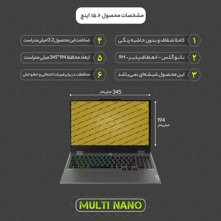 محافظ صفحه نمایش شفاف مولتی نانو مدل X-S1N مخصوص لپ تاپ لنوو LOQ 15IAX9 15.6 inch 2024 با استفاده از فناوری نانو و ترکیب مواد سیلیکونی و مقدار کمی شیشه فشرده ساخته شده است. این محافظ برخلاف گلسهای شیشهای، انعطافپذیر و نشکن بوده و در برابر ضربه مقاومت بالایی دارد. ضخامت کم (0.2 میلیمتر) باعث میشود کیفیت تصویر نمایشگر بدون هیچ افتی حفظ شود. سطح محافظ دارای پوشش روغنی ویژهای است که باعث میشود عملکرد تاچ و قلم کاملاً روان و بدون تاخیر باشد. برای نصب، ابتدا باید برچسب شماره 1 را جدا کرده و محافظ را دقیقاً در مرکز نمایشگر قرار داد، سپس با استفاده از کارت، هوای زیر آن را خارج کرده و در نهایت برچسب شماره 2 را جدا کرد. توجه داشته باشید که برای نصب صحیح، نباید محافظ را از یک گوشه فیکس کرد، بلکه باید آن را از مرکز نمایشگر تنظیم نمود.