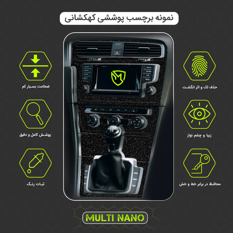 سایر توضیحات: برچسب کهکشانی کنسول خودرو فونیکس Arrizo 5T New Pro - ساخته شده از تکنولوژی نانو - مقاوم در برابر خط و خش و ضد اثر انگشت - پوشش 98 درصدی کنسول - ضخامت بسیار کم - ثبات رنگ - زیبا و چشم نواز