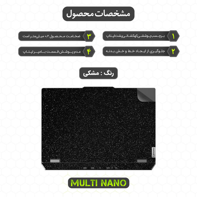 سایر توضیحات: سری محصول: برچسب پوششی کهکشانی - طراحی : برش دقیق و مخصوص لپ تاپ لنوو LOQ 15IAX9 2024 15.0 inch - دارای خاصیت چسبندگی کامل (تمام چسب) - جلوگیری از ایجاد خط و خش بر پشت لپ تاپ - ثبات رنگ، ضد لک و ضد اثر انگشت - عدم محافظت در برابر ضربه - ضخامت ۰.1 میلیمتر