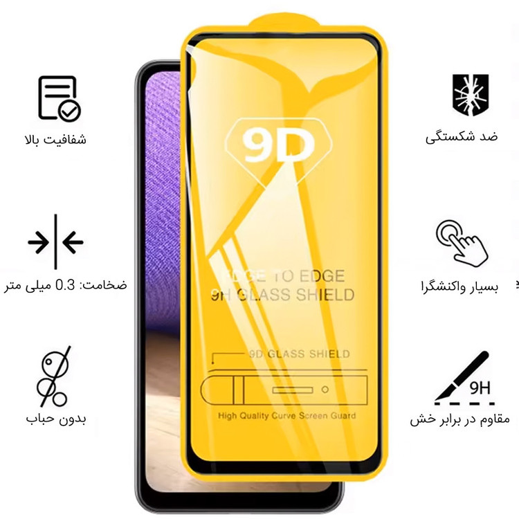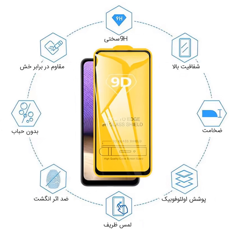 نصب آسان بدون حباب پوشش کامل صفحه شفافیت بالا ضد خط وخش مقاومت در برابر ضربه حفظ حساسیت لمس لبههای منحنی و دقیق ضخامت استاندارد طول عمر بالا حفظ کیفیت تصویر