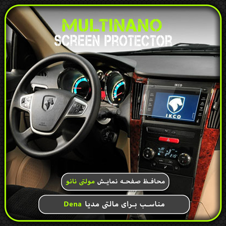 امروزه خودروها دارای دستگاه پخش هوشمند، با صفحه نمایش لمسی و ابعادی متنوع هستند و محافظت از این نوع مانیتور ها در برابر ضربات احتمالی و ایجاد خط و خش، یکی از مهمترین دغدغه های صاحبان خودرو به شمار می آید. شرکت مولتی نانو به صورت کاملا دقیق و با به روز ترین متد های اندازه گیری، محافظ هایی با ابعاد کاملا انحصاری برای نمایشگر های هوشمند خودروها طراحی ، تولید وعرضه کرده است. محافظ صفحه نمایش انعطاف پذیر نانو Multi Nano مناسب برای مالتی مدیا مانیتور فابریک خودرو IKCO Dena (ابعاد محافظ 197x98 میلیمتر) بوده و بر روی این مانیتور قابل نصب است. محافظ نمایشگر خودرو مولتی نانو، نسل جدید محافظ های صفحه نمایش، با ساختاری شفاف که از تکنولوژی نانو در ساخت آن استفاده شده و از ضخامت 0.2 میلی متری برخوردار میباشد(شیشه ای نمی باشد) و باعث مقاومت بسیار بیشتر در برابر ضربه نسبت به گلس های معمولی شده است، همچنین کاملا نشکن است و در صورت برخورد ضربه نخواهد شکست، و به مرور زمان کدر نخواهد شد و لمس آن با توجه به ساختار تکنولوژی روغنی بسیار آسان و روان است. توجه داشته باشید که این محصول دارای برچسب اول (قبل از نصب) و برچسب دوم (بعد از نصب) می باشد و داخل بسته بندی محصول برای سهولت در نصب، لوازم کامل به همراه آموزش نصب نیز وجود دارد.xxxشما میتوانید ویدئو آموزش نصب و تست مقاومت محافظ بر روی مانیتور را در آپارات و شبکه های مجازی مشاهده کنید.xxx