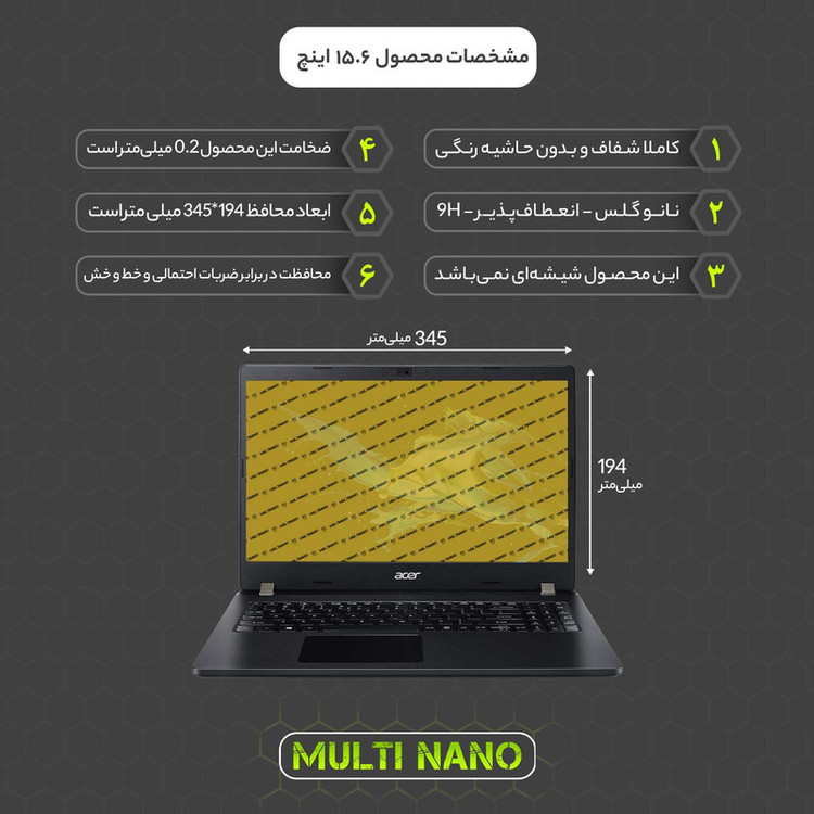 محافظ صفحه نمایش شفاف مولتی نانو مدل X-S1N مناسب برای لپ تاپ ایسر TravelMate P215 15.6 inch 2020