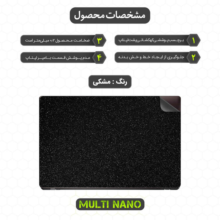 اگر بهدنبال راهی ساده، شیک و کاربردی برای محافظت و زیباسازی لپتاپ خود هستید، برچسب پوششی با طرح کهکشانی لپ تاپ ایسوس K55V 15.6 inch 2012 میتواند انتخابی هوشمندانه برای شما باشد. طراحی منحصربهفرد آن با رنگ مشکی و جلوه درخشان کهکشانی، در نور خورشید برق خاصی دارد و در محیطهای کمنور، ظاهری مینیمال و حرفهای به لپتاپ میبخشد.این برچسب از متریالی مقاوم ساخته شده که بهخوبی از قسمت پشتی لپتاپ در برابر خط و خش، گرد و غبار و لکه محافظت میکند، بدون آنکه وزن یا ضخامت دستگاه را افزایش دهد. طراحی دقیق و برشهای کاملاً هماهنگ با بدنه دستگاه، نصب آسان و بدون مزاحمت را فراهم کردهاند.از آنجایی که فقط سطح پشتی لپتاپ را میپوشاند و لبهها آزاد میمانند، میتوانید بهراحتی از کیف یا قاب محافظ نیز بهطور همزمان استفاده کنید. همچنین، پس از جداسازی این برچسب، هیچگونه اثر چسب یا آسیبی روی سطح باقی نمیماند و لپتاپ شما کاملاً تمیز و مانند روز اول باقی خواهد ماند.ظاهر خاص و فرایند نصب ساده، این برچسب را به گزینهای مناسب برای کاربرانی تبدیل کرده که علاوهبر محافظت، به زیبایی دستگاه خود نیز اهمیت میدهند.