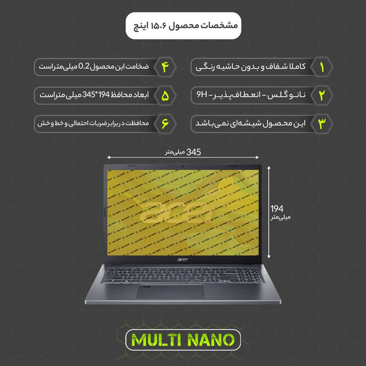 محافظ صفحه نمایش شفاف مولتی نانو مدل X-S1N مناسب برای لپ تاپ ایسر Aspire 15 A15-51M-74XE-Z 15.6 inch