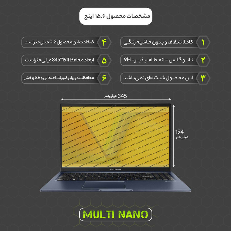 محافظ صفحه نمایش شفاف مولتی نانو مدل X-S1N مناسب برای لپ تاپ ایسوس VivoBook 15 X1502 15.6 inch 2022