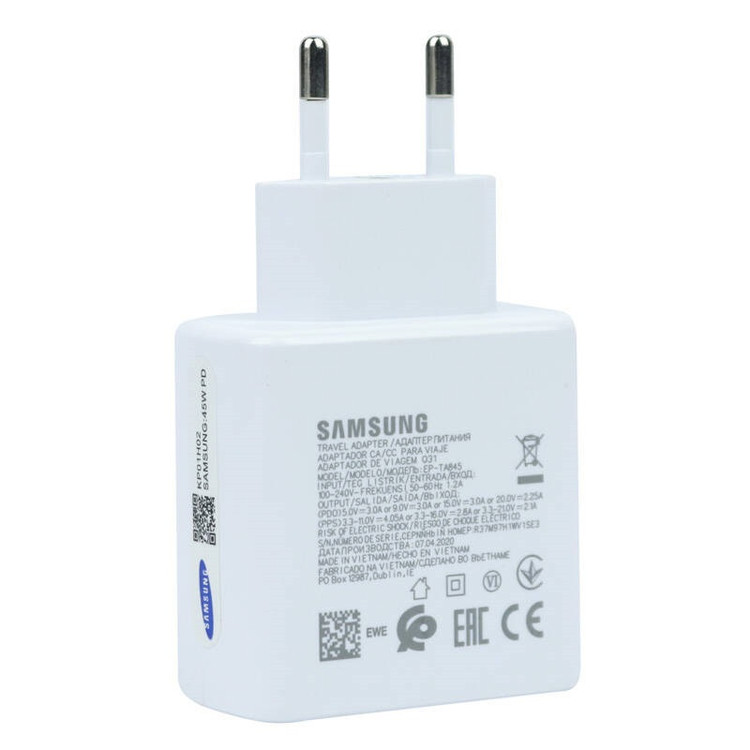 کلگی فست شارژ مدل EP TA845 توان خروجی 45 وات به همراه کابل تایپ سی با ولتاژ ورودی 100 الی 240 ولت، فرکانس ولتاژ 50-60 هرتز، موفق به دریافت استاندارد CE شده است. متریال ساخته شده از ABS مقاوم در برابر فشار و ضربه، دارای یک درگاه خروجی از نوع تایپ سی و یک عدد کابل تبدیل Type-C به Type-C مناسب برای استفاده شما می باشد. با پشتیبانی از شارژ سریع و فناوری Power Delivery جهت شارژ سریع تر گوشی موبایل و تبلت، توان خروجی کلی 45 وات و شدت جریان خروجی در حالت ولتاژ ثابت (PDO) برابر با 3 آمپر در ولتاژ متغیر 5، 9 و 15 ولت و 2٫25 آمپر در ولتاژ 20 ولت همراه با شدت جریان خروجی در حالت ولتاژ متغیر (PPS) معادل 4٫05 آمپر در ولتاژ متغیر 3٫3 الی 11 ولت، 2٫8 آمپر در ولتاژ متغیر 3٫3 الی 16 ولت و 2٫1 آمپر در ولتاژ متغیر 3٫3 الی 21 ولت یک محصول با کیفیت را در اختیار شما قرار می دهد.