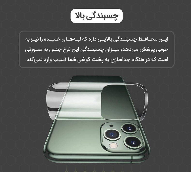 افرادی که نمی خواهند روی بدنه گوشی آنها هیچ گونه خط و خشی ایجاد شود می توانند از برچسب های پشت گوشی نانو استفاده نمایند.این نوع محافظ ضخامت بسیار کم و انعطاف پذیری بالایی دارد که بدنه پشت گوشی شما، حتی لبه های منحنی پشت گوشی را به طور کامل پوشش می دهد و از چسبندگی بالایی برخوردار است. با میزان شفافیت بالایی که دارد در ظاهر و رنگ گوشی شما تغییری ایجاد نمی کند. بنابراین اگر شفافیت ، ظرافت و جلوگیری از ایجاد خط و خش بدنه گوشی برایتان اهمیت دارد؛ برچسب های نانو پشت، گزینه بسیار مناسبی برای خرید هستند. قسمت سفید محصول فقط بک برد و دور ریز میباشد.