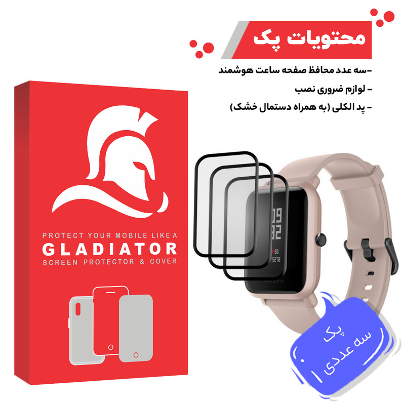 محافظ صفحه نمایش گلادیاتور مدل GWP3000 مناسب برای ساعت هوشمند شیائومی Amazfit Bip Lite بسته سه عددی