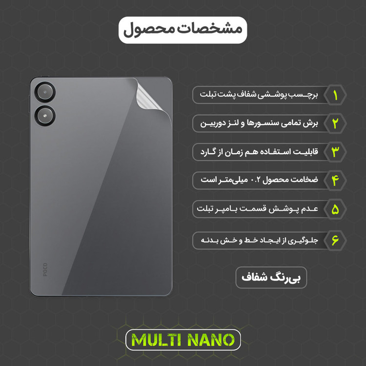 اگر میخواهید ظاهر لوکس و طراحی چشمنواز تبلت شیائومی Redmi Pad Pro 12.1 inch 2024 شما بهوضوح دیده شود و در عین حال از آسیبهای احتمالی در امان بماند، محافظ پشت شفاف هیدروژل مولتی نانو مدل X-F1T انتخابی هوشمندانه و حرفهای است. این محصول از متریال PPF (هیدروژلی خودترمیمشونده) ساخته شده و با ضخامت بسیار کم (حدود ۰.۲ میلیمتر)، بدون افزودن وزن یا تغییر در فرم ظاهری دستگاه، از بخش پشتی بدنه در برابر خط و خش ناشی از سایش، گرد و غبار و تماسهای روزمره محافظت میکند. طراحی آن بهگونهای است که لبههای دستگاه را نمیپوشاند، در نتیجه میتوانید بهراحتی از انواع کاورها و کیبوردهای مغناطیسی نیز استفاده کنید. برخلاف تصور رایج که گارد بهتنهایی کافی است، گرد و غبار جمعشده بین قاب و بدنه میتواند به مرور زمان به بدنه آسیب بزند، از اینرو استفاده از محافظ شفاف ضدخش، نهتنها در حفظ ظاهر آیپد مؤثر است بلکه ارزش آن را نیز حفظ میکند. این محافظ با نصب آسان، چسبندگی بالا، خاصیت خودترمیمی و شفافیت بینقص، گزینهای ایدهآل برای کاربرانیست که به دنبال محافظتی مطمئن و نامحسوس برای دستگاه خود هستند.