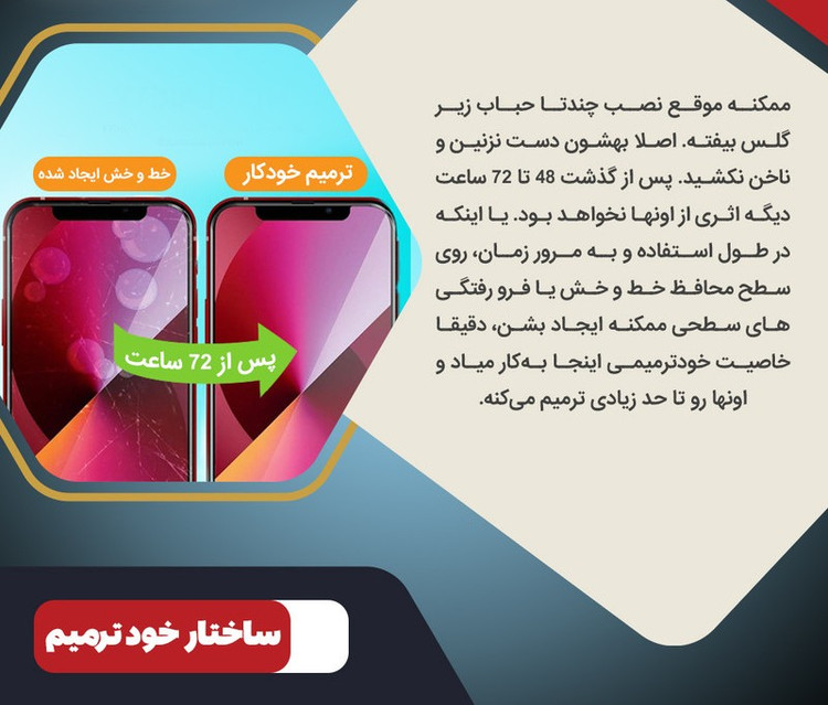 9H , جلوگیری از ایجاد خط و خش , قابلیت نصب آسان , مقاوم در برابر چربی و اثرانگشت , مقاوم در برابر خط و خش , نصب بدون حباب