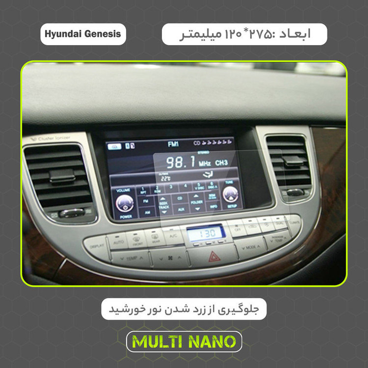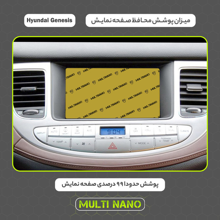 امروزه خودروها دارای دستگاه پخش هوشمند، با صفحه نمایش لمسی و ابعادی متنوع هستند و محافظت از این نوع مانیتور ها در برابر ضربات احتمالی و ایجاد خط و خش، یکی از مهمترین دغدغه های صاحبان خودرو به شمار می آید. شرکت مولتی نانو به صورت کاملا دقیق و با به روز ترین متد های اندازه گیری، محافظ هایی با ابعاد کاملا انحصاری برای نمایشگر های هوشمند خودروها طراحی ، تولید وعرضه کرده است. محافظ صفحه نمایش انعطاف پذیر نانو Multi Nano مناسب برای مانیتور خودرو (هیوندا Genesis 2011 - 2013) بوده و روی تمامی مانیتورهای این خودرو از جمله مانیتورهای رایان فن کاو اندیش، کروز و سیمیا الکترونیک قابل نصب است. محافظ نمایشگر مولتی نانو، نسل جدید محافظ های صفحه نمایش، با ساختاری شفاف که از تکنولوژی نانو در ساخت آن استفاده شده و از ضخامت 0.2 میلی متری برخوردار میباشد(شیشه ای نمی باشد) و باعث مقاومت بسیار بیشتر در برابر ضربه نسبت به گلس های معمولی شده است، همچنین کاملا نشکن است و در صورت برخورد ضربه نخواهد شکست، و به مرور زمان کدر نخواهد شد و لمس آن با توجه به ساختار تکنولوژی روغنی بسیار آسان و روان است. توجه داشته باشید که این محصول دارای برچسب اول (قبل از نصب) و برچسب دوم (بعد از نصب) می باشد و داخل بسته بندی محصول برای سهولت در نصب، لوازم کامل به همراه آموزش نصب نیز وجود دارد.