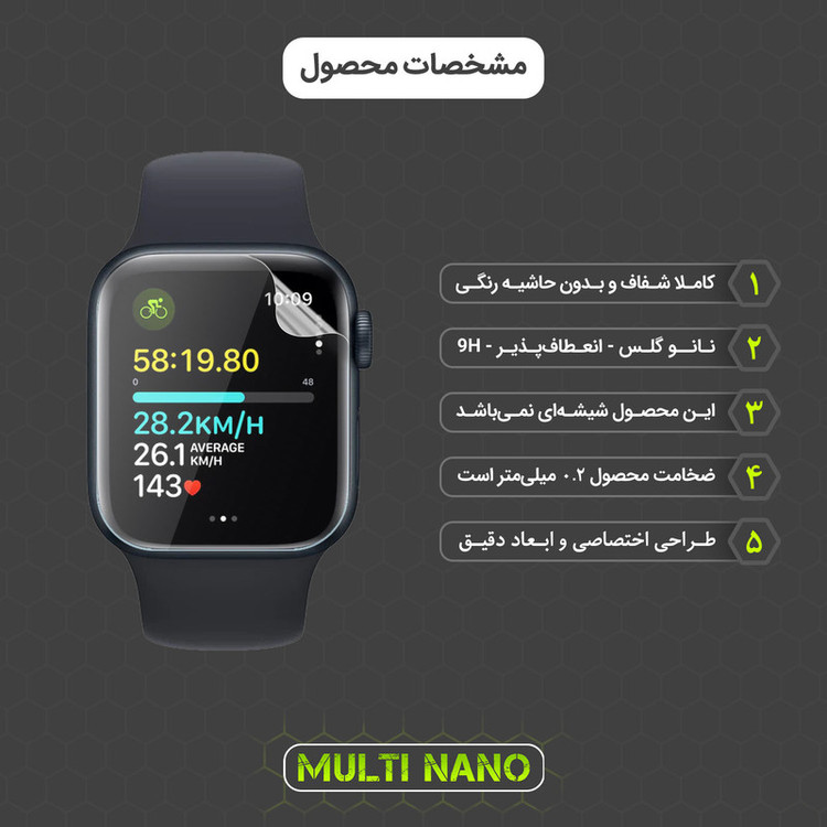 مشخصات: انعطاف پذیر و خود ترمیم - دارای پوشش تمام چسب - دارای خاصیت کشسانی - شامل سه عدد محافظ صفحه نمایش شفاف - به همراه لوازم کامل جهت نصب