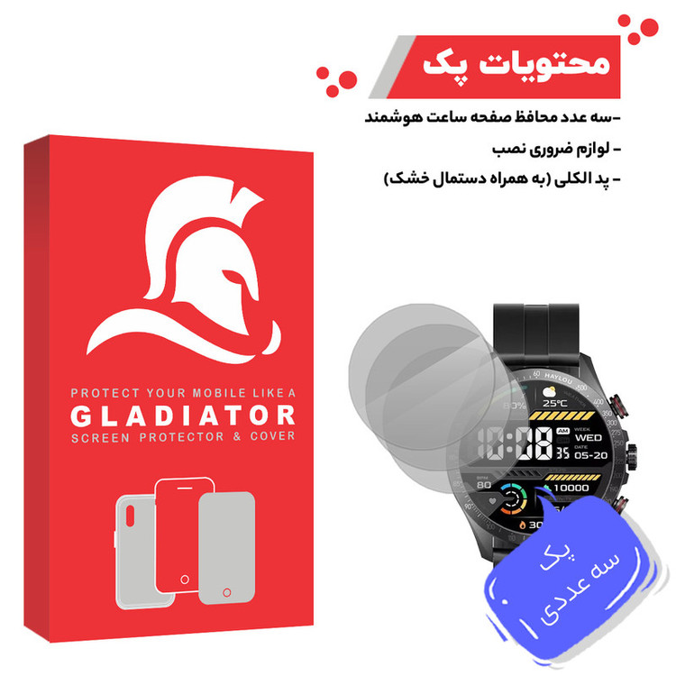 محافظ صفحه نمایش گلادیاتور مدل GWP3000 مناسب برای ساعت هوشمند هایلو Sloar Pro بسته سه عددی