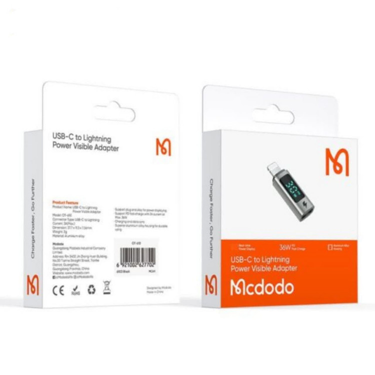 تبدیل شارژ آیفونی Mcdodo OT-6100 دارای روکشی از جنس آلیاژ آلومینیوم است که مقاومت آن را در برابر فشار و ضربه بالا برده است که به همین سبب طول عمر آن هم بیشتر خواهد شد. یک درگاه Type-c و یک کانکتورلایتنینگ دو طرف این تبدیل را تشکیل دادهاند که به همین سبب امکان استفاده از کابلهای Type-c را برای دستگاه هایی که تنها دارای درگاه لایتنینگ هستند، مهیا می کند. ابعاد بدنه این تبدیل برابر است با 37.25*11.3*7.56 میلی متر و وزنی معادل 3 گرم دارد. در نتیجه با توجه به این اعداد و ارقام امکان همیشه همراه داشتن آن برای شما وجود دارد و می توانید به سادگی از آن استفاده نمایید. همچنین بر روی این تبدیل یک صفحه LED قرار گرفته که توان شارژ را در هر لحظه نشان میدهد. این تبدیل به گونه ای طراحی شده است که می توانید با استفاده از آن، به انتقال اطلاعات پرداخته و همچنین امکان شارژ کردن گوشی و… خود را توسط آن داشته باشید. تبدیل لایتنینگ به Type-c مک دودو OT-6100 به شما این امکان را می دهد تا بتوانید به راحتی اطلاعات خود را با سرعت مطلوبی انتقال دهید. توان این تبدیل برابر با 36 آمپر است که به این شکل میتواند از سرعت بالا برای شارژ کردن نیز پشتیبانی نماید؛ البته برای اینکه گوشی خود را با سرعت بالایی شارژ نمایید، دستگاه شما نیز باید از این شدت جریان و ویژگی پشتیبانی کند. این محصول علاوه بر قابلیت OTG از قابلیت شارژ سریع PD نیز پشتیبانی می کند که باعث شارژ دستگاه های شما با سرعت بالا خواهد شد.