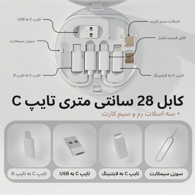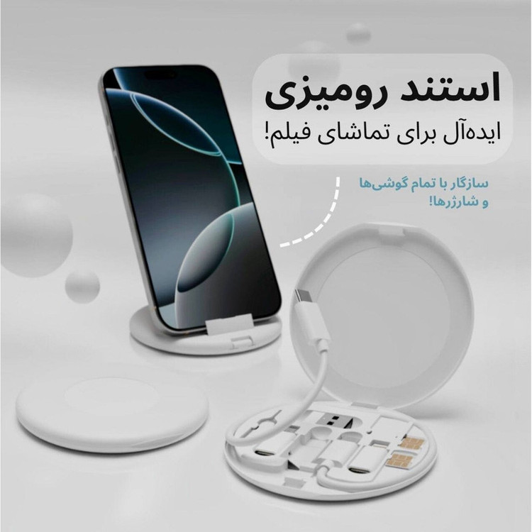 این وسیله همه کاره شما رو از همراه داشتن چندین مدل کابل شارژ بی نیاز میکنه و یه استند خوب همراه برای شماست و علاوه بر این دارای 3 اسلات رم با سیمکارت هستش و حتی سوزن بزای تعویض سیمکارت هم داخلش قرار داره