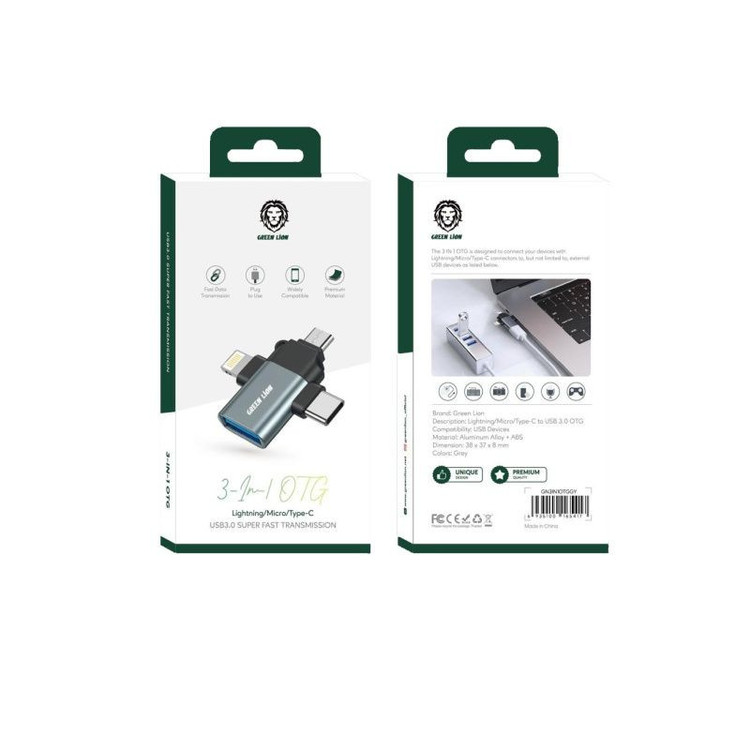 مبدل USB به لایتنینگ/USB-C/microUSB گرین لاین مدل GN 3in1 OTGGY