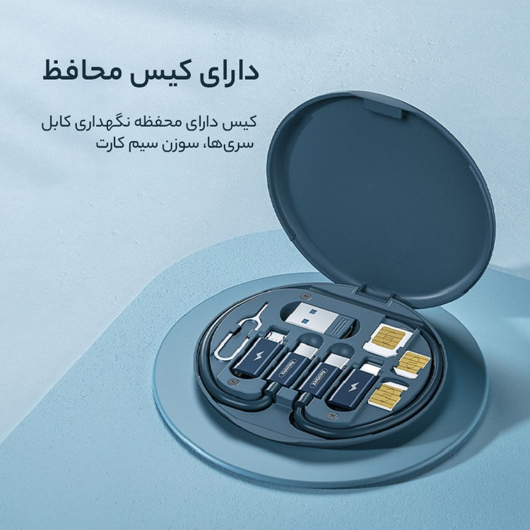 کابل تبدیل USB/USB-C به microUSB / لایتنینگ / USB-C ریمکس مدل RC_190 طول 0.29 متر به همراه سوزن سیم کارت