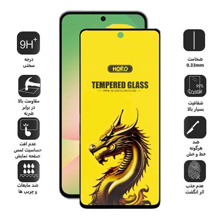 ویژگیها: 9H , قابلیت نصب آسان , مقاوم در برابر چربی و اثرانگشت , مقاوم در برابر خط و خش , نصب بدون حباب , صفحه نمایش