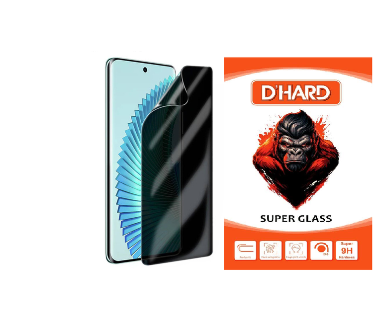 هیدروژل D`HARD در واقع جدیدترین نوع محافظ صفحه برای گوشی های هوشمند با صفحه خمیده می باشد. این نوع محافظ صفحه با حفظ تمام خصوصیات گلس به صورت خیلی نازک به بازار عرضه شده که این سبب می شود بتوان آنرا به راحتی نصب کرد. همچنین به علت استفاده از مواد پلی کربنات کامل نشکن می باشند. این محصول تنها محصول موجود در بازار می باشد که سنسور اثر انگشت بدون هیچ مشکلی قابل استفاده می باشد. ویژگی بارز این محصول محافظت از حریم خصوصی کاربر می باشد. به طوریکه تنها کسی که از روبرو به صفحه نمایش نگاه می کند قادر به دیدن آن می باشد و صفحه نمایش از کناره ها قابل مشاهده نمی باشد و برای کسانی که از اطراف به صفحه نمایش نگاه می کنند تنها یک صفحه کاملا تاریک می بینند.