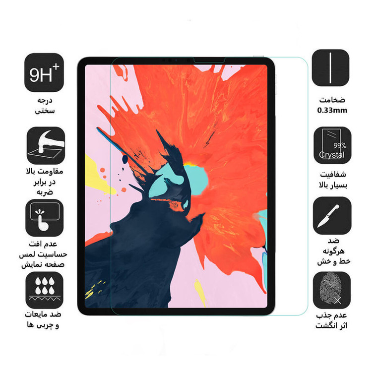 ویژگیها: 9H , جلوگیری از انعکاس نور , جلوگیری از ایجاد خط و خش , قابلیت نصب آسان , مقاوم در برابر چربی و اثرانگشت , مقاوم در برابر خط و خش , نصب بدون حباب