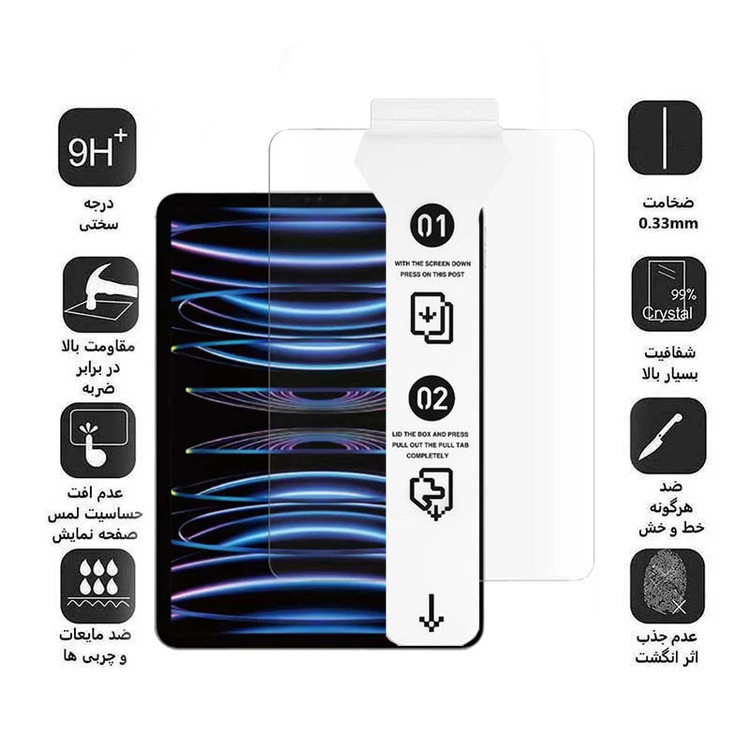 صفحه نمایش , نصب بدون حباب , مقاوم در برابر خط و خش , مقاوم در برابر چربی و اثرانگشت , قفل آهنربایی , قابلیت نصب آسان , 9H