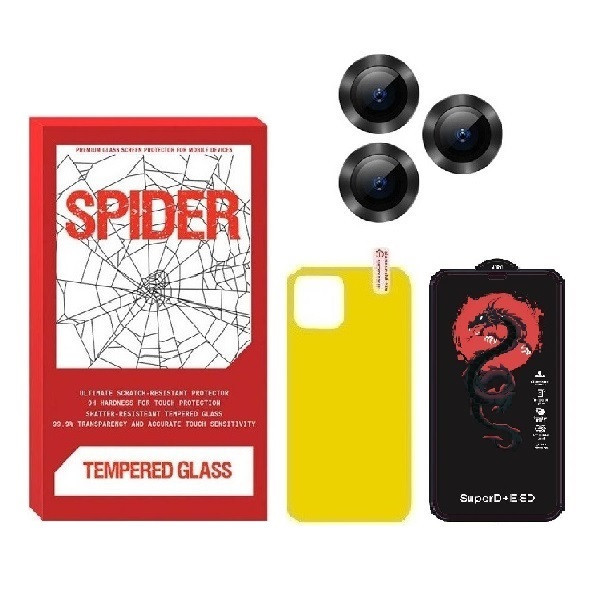 محافظ صفحه نمایش اسپایدر مدل HORO مناسب برای گوشی موبایل اپل iPhone 13 Pro Max به همراه محافظ پشت گوشی و محافظ لنز دوربین